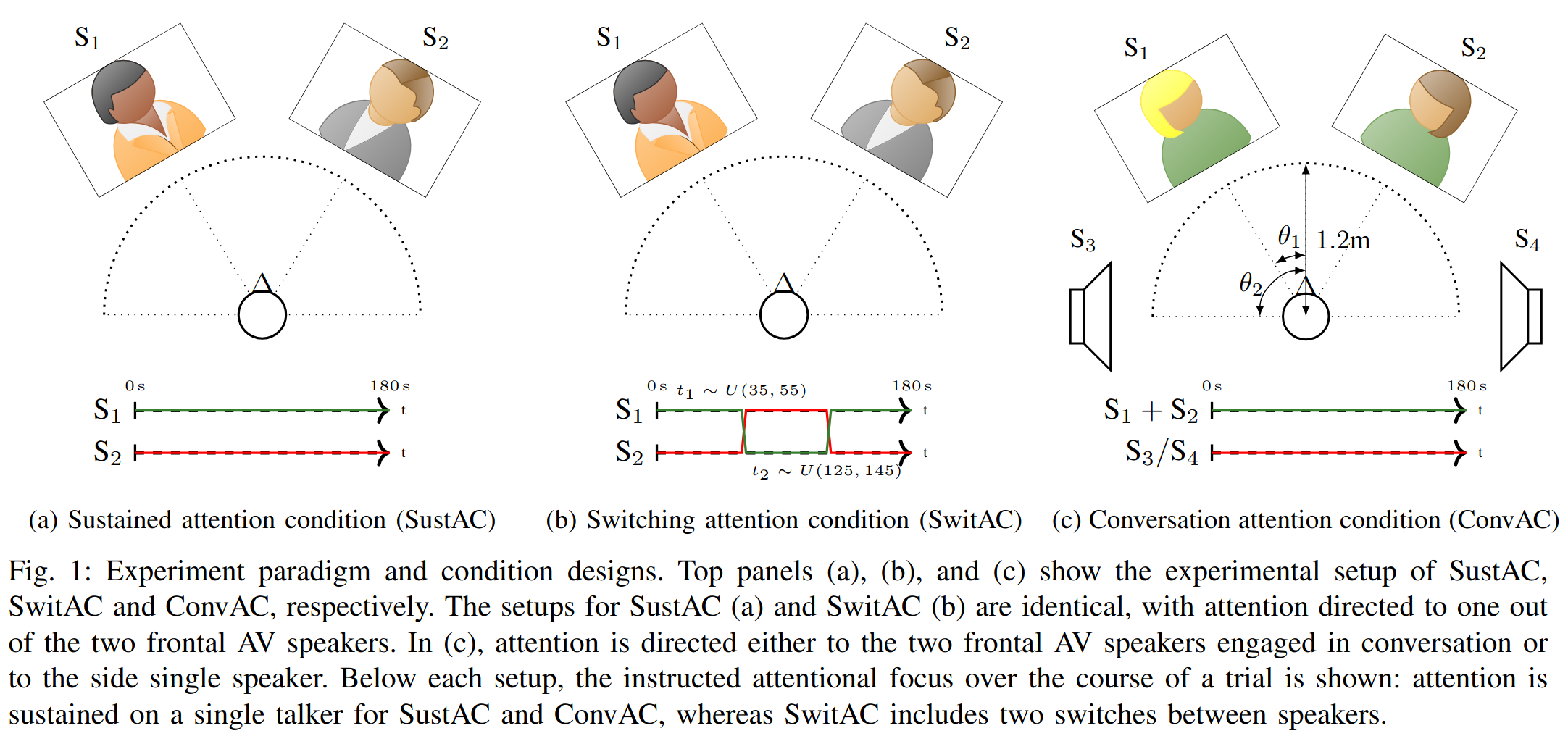 Experiment, on participants listening to conversations, and with attention switches
